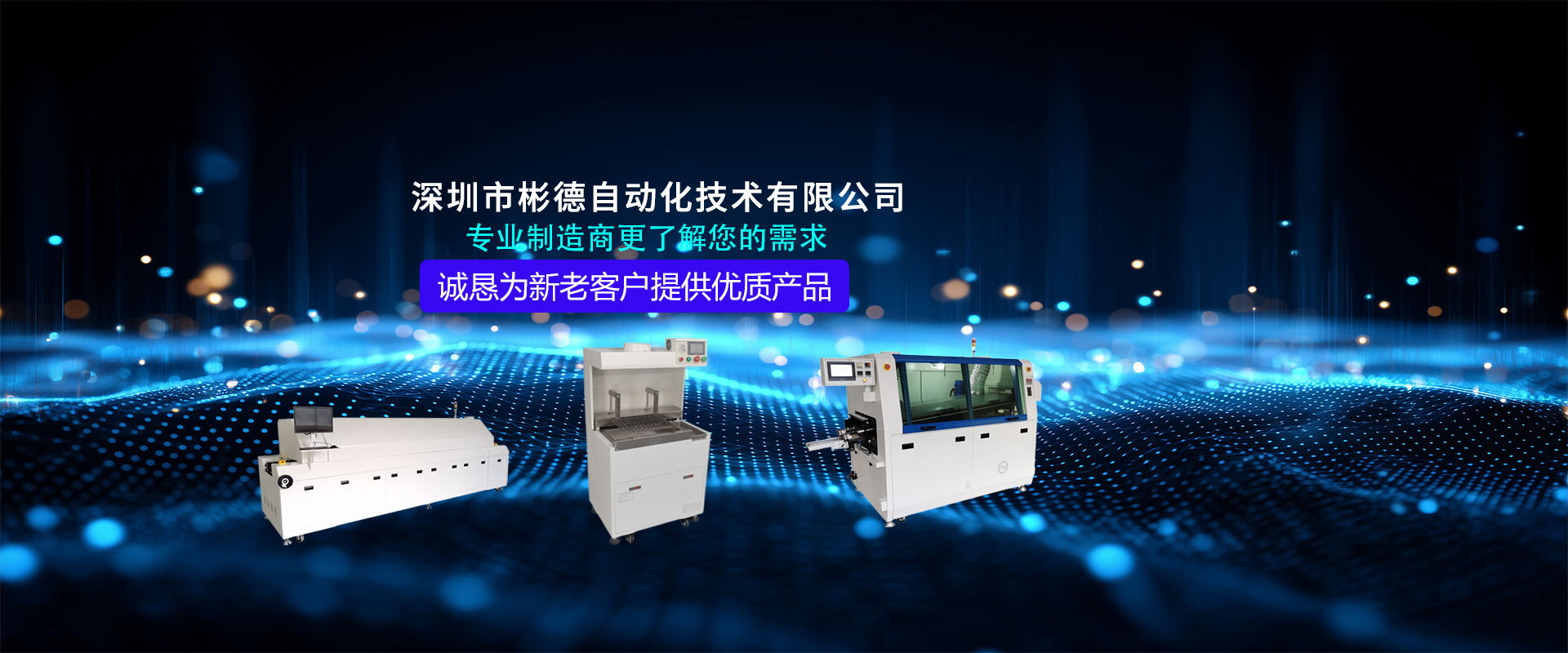 深圳市彬德自动化技术有限公司成立于2020年,主要从事非标自 动化设备的开发、研制、生产、销售、服务于一体的专业制造商,彬德自动化本着“产品的质量是企业生存的源动力”的理念在把关好产品质量的同时持续开发创新,争取为客户创造更舒适更省心的需求。