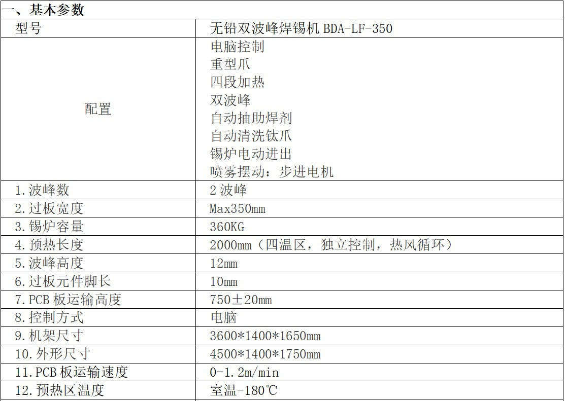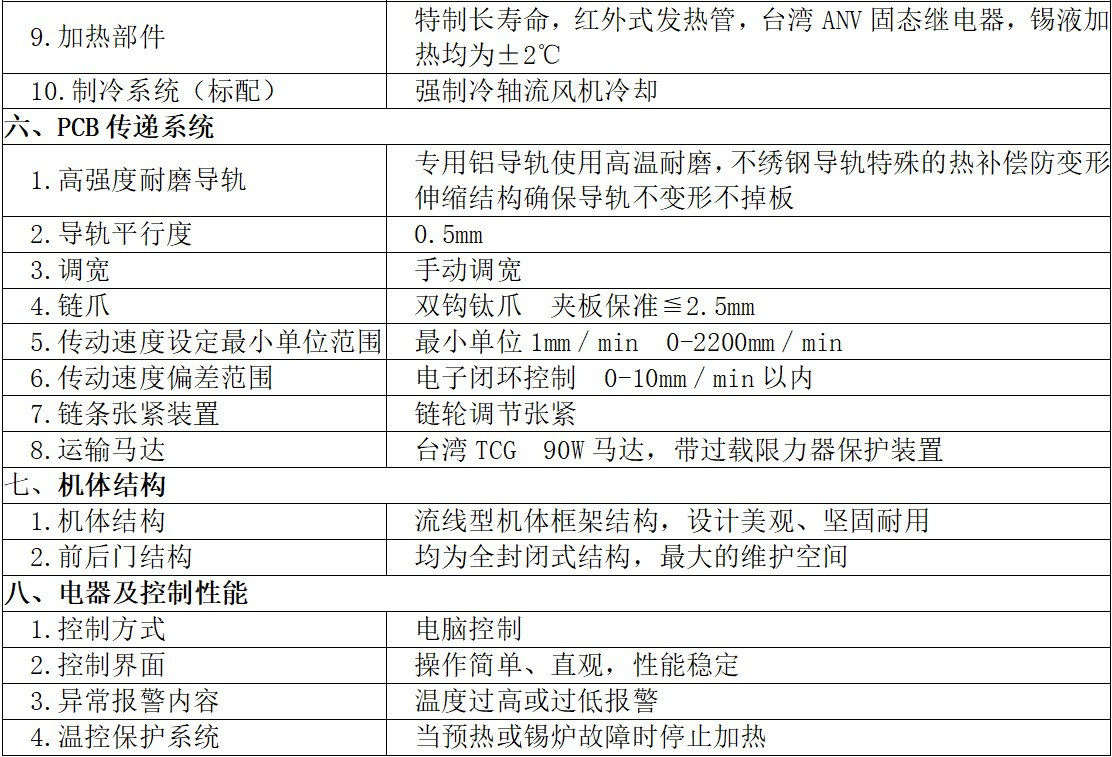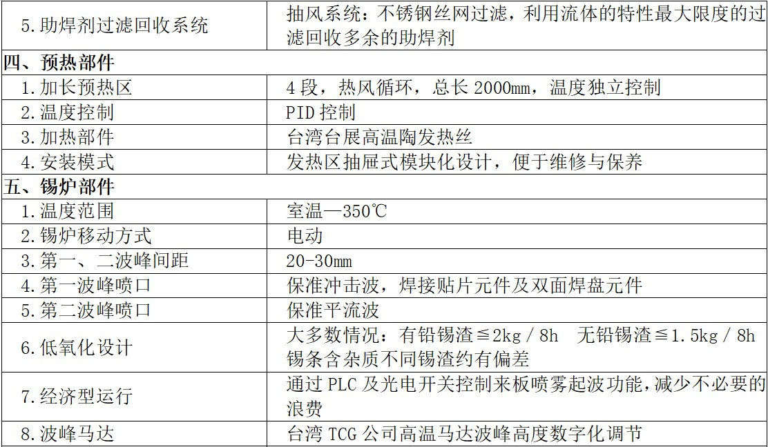 7、锡炉采用可调节喷口设计;锡渣氧化量超低,采用液态锡流动式设计原理,减少锡的冲击氧化量,波峰可随PCB板宽窄调节,大大减少了焊接PCB小板时锡的氧化量,可调距离为80-350MM。